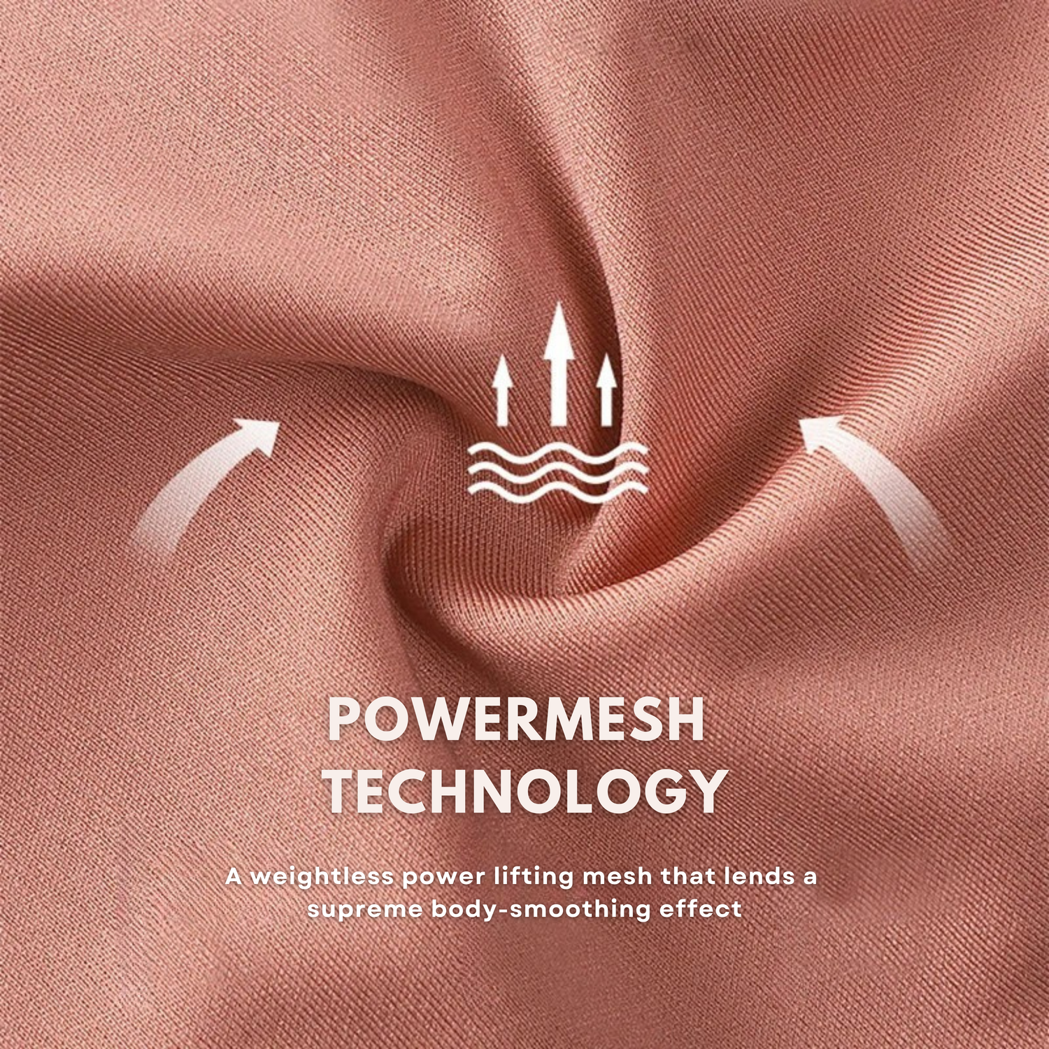 Powermesh fabric smooths shapes your curves for a confident silhouette.